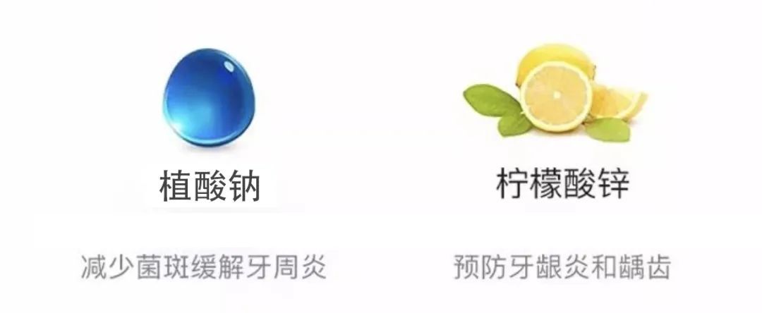 此外还添加了两项“美牙圣品”——植酸钠,柠檬酸锌。
