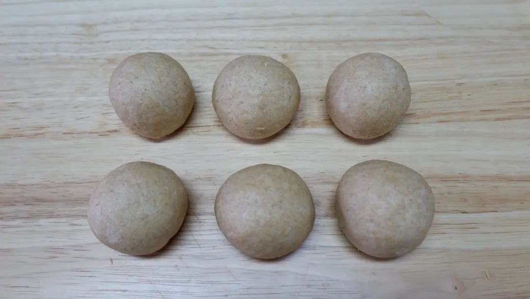 将面团排气并等份分割,分割的面团搓圆并松弛10分钟