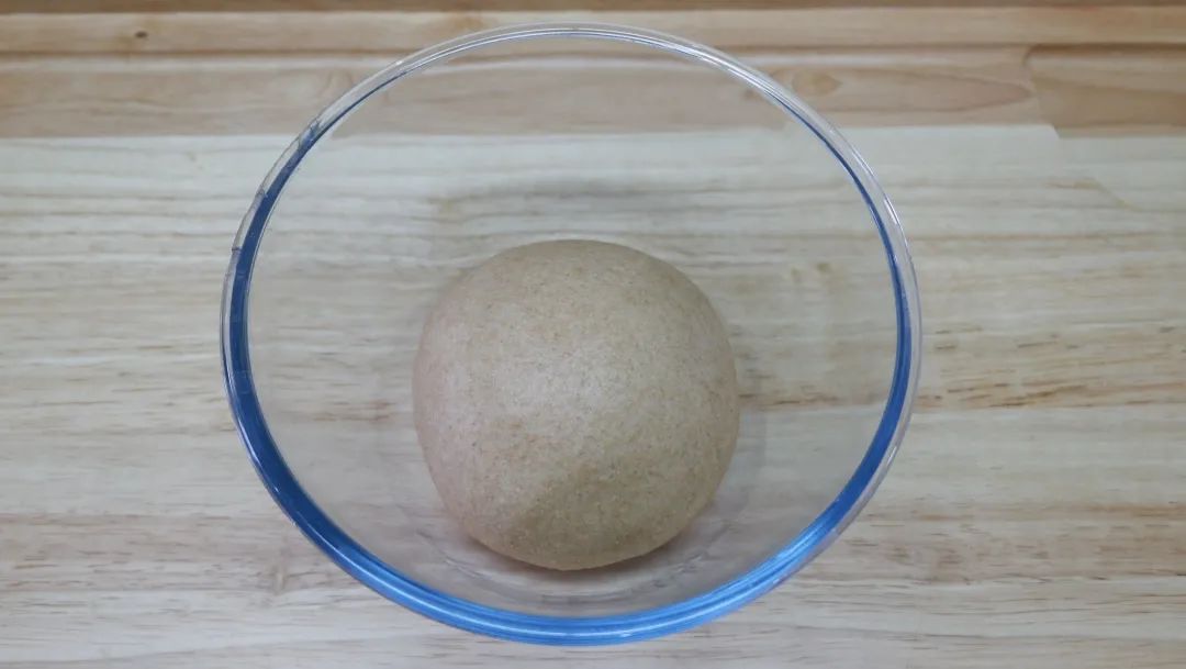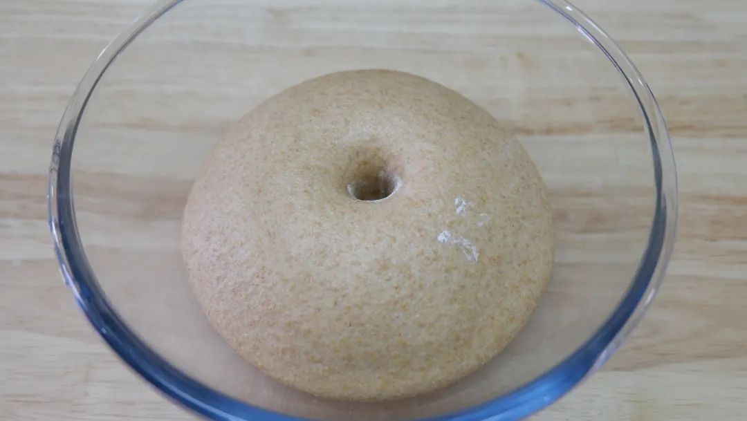 将搅拌好的面团放入器皿中进行发酵,发酵1-1.5倍大后取出,手指戳面团,洞口没有回缩即可