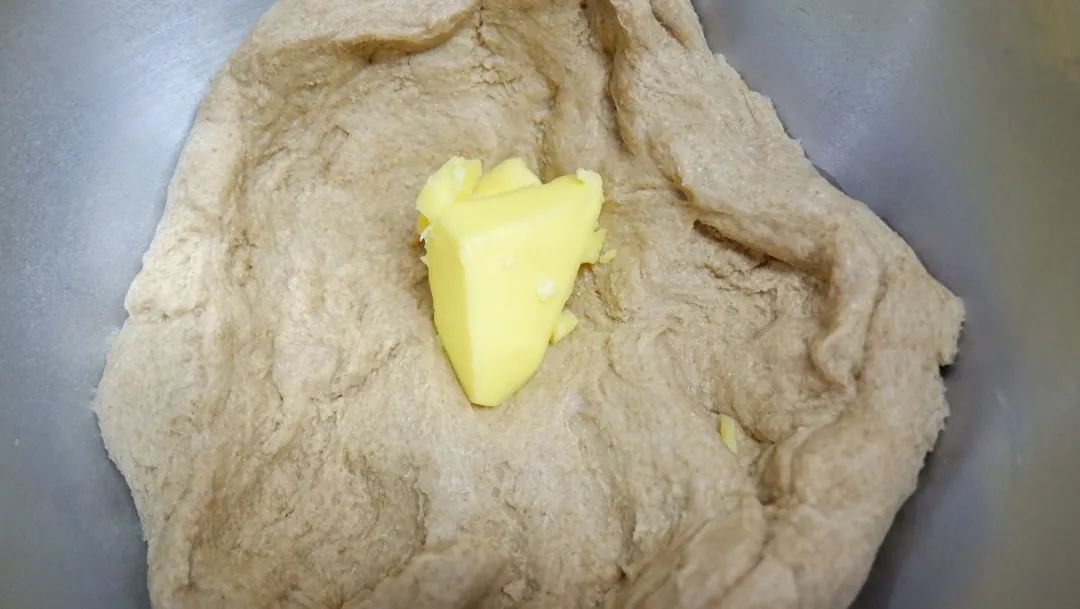 加入黄油进行最后的搅拌,形成较薄的面筋膜
