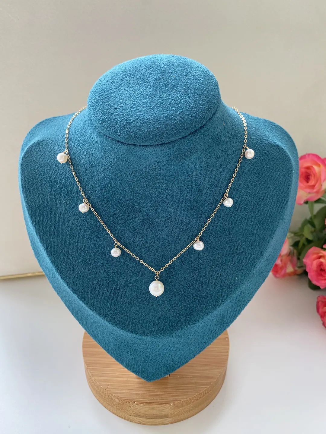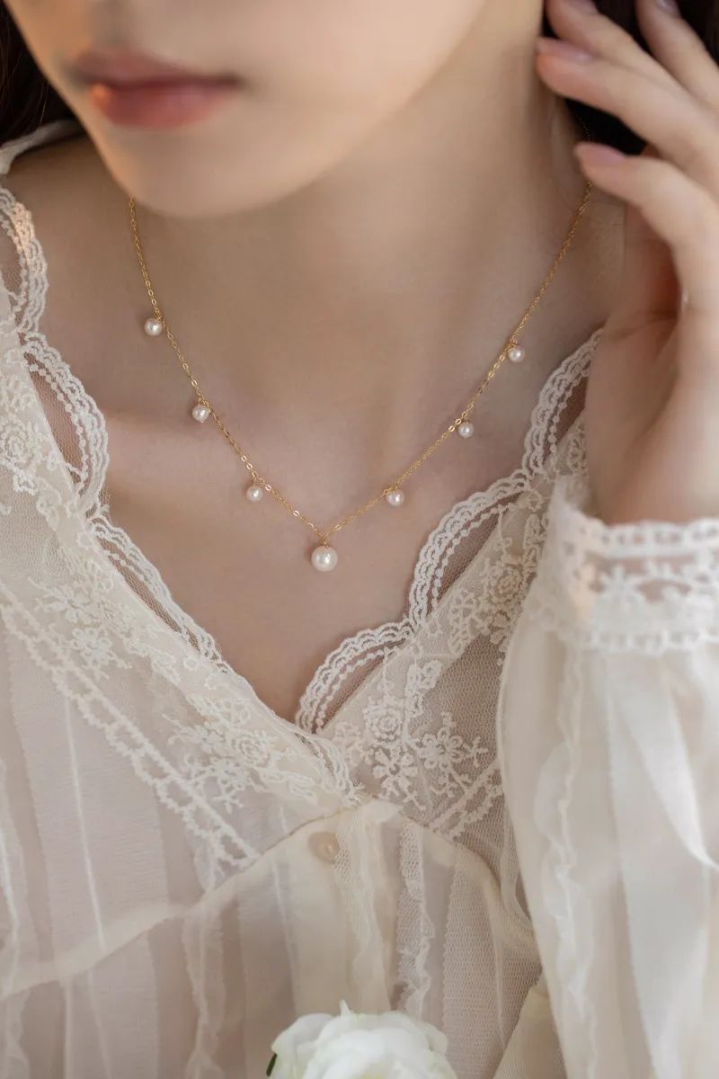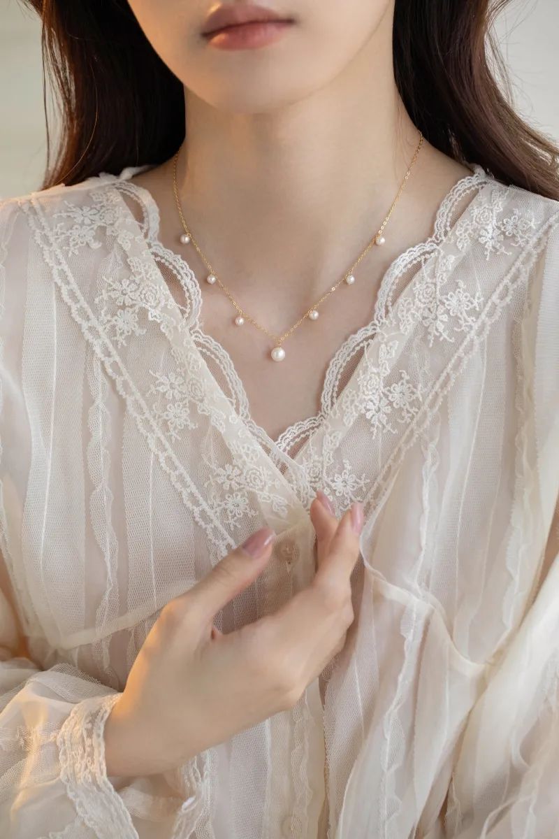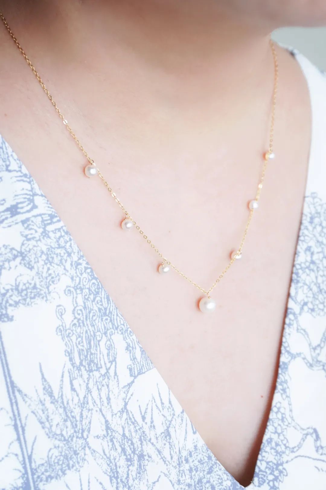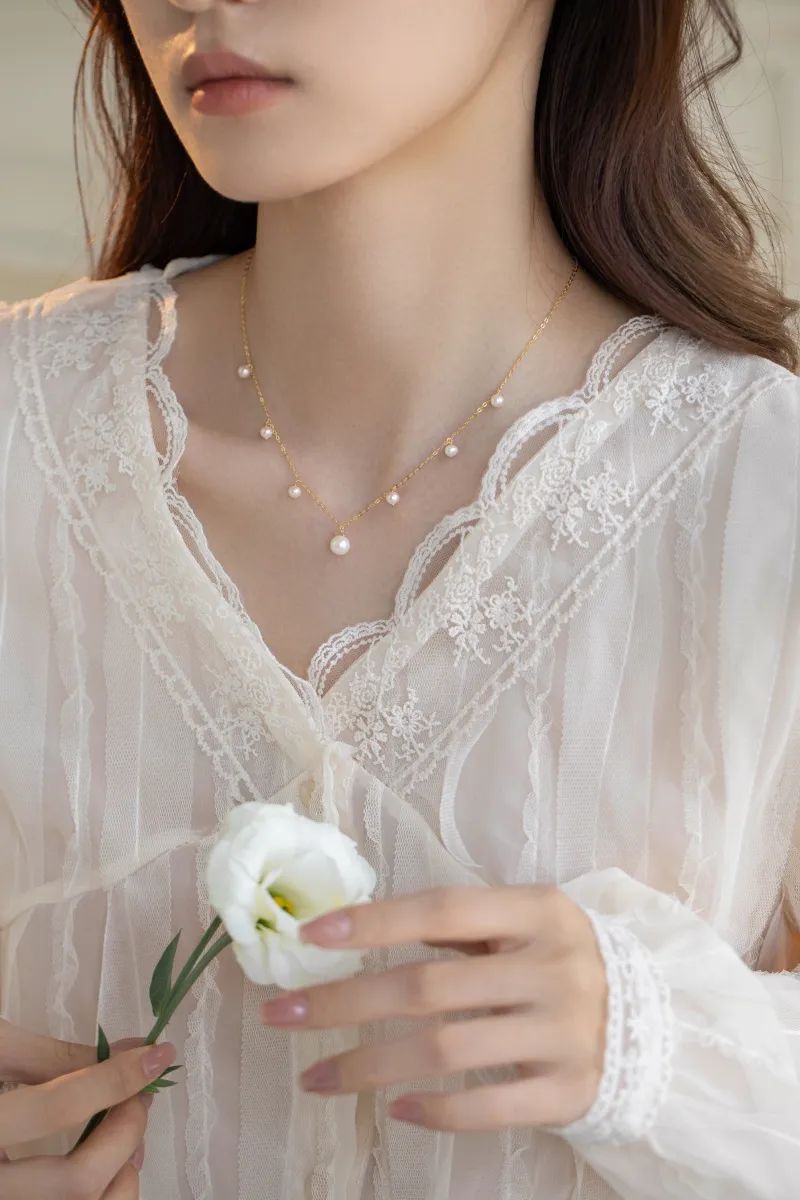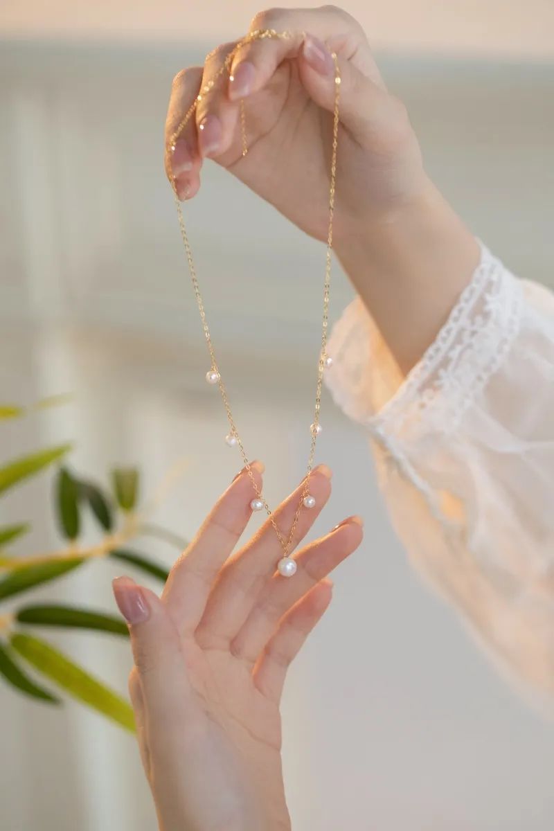 这款项链是品牌设计师独家定制款,大小珍珠搭配的落差美感,像繁星般动人,精致优雅不挑人,一眼就爱上,拉长颈部线条,单戴叠戴都绝美。