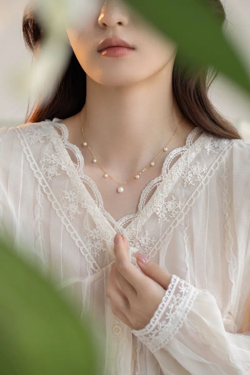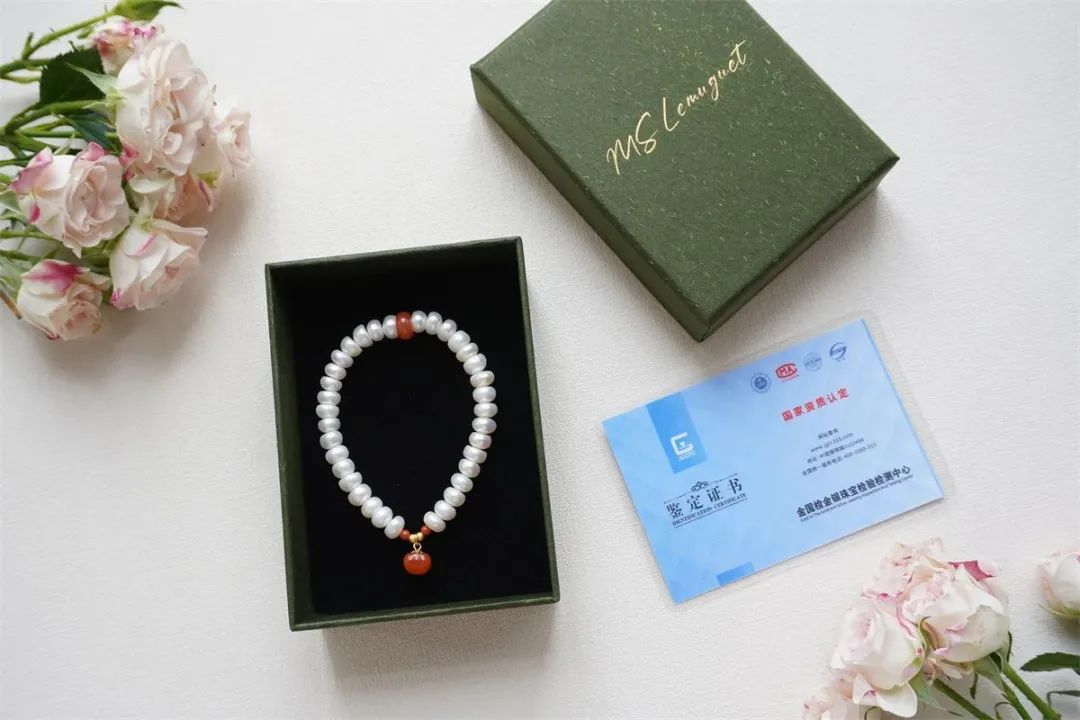 铃兰小姐坚信珍珠是有生命的,是人、海、贝共同孕育的奇迹,所以在挑选珍珠的时候也尤为严格,选用诸暨天然淡水珍珠,