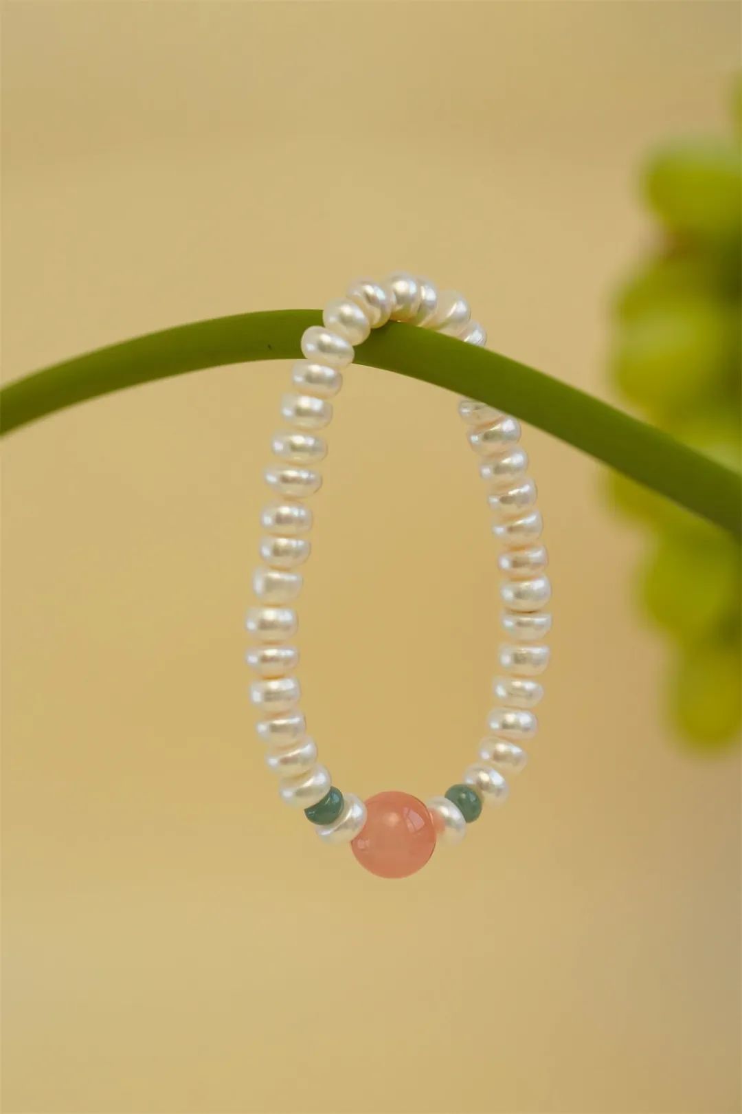 【初桃】材质:淡水珍珠、玛瑙、翡翠(A货)