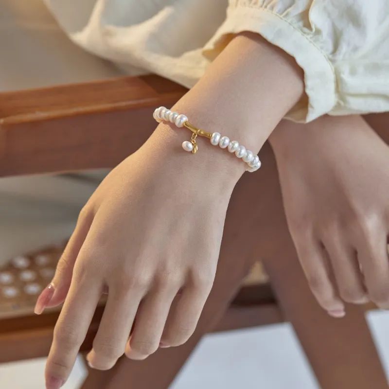 每件都是纯天然淡水珍珠手工串珠,戴在手腕间,是天然来修饰的腕间艺术,精致好看。