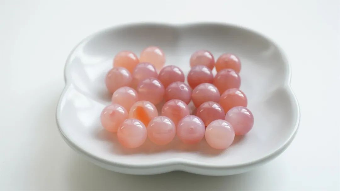 绯红玛瑙的颜色多样,其中属蜜桃粉的颜色最受欢迎,也是最难挑选的颜色,这款手串仅挑选甜蜜梦幻的蜜桃粉绯红玛瑙来串珠
