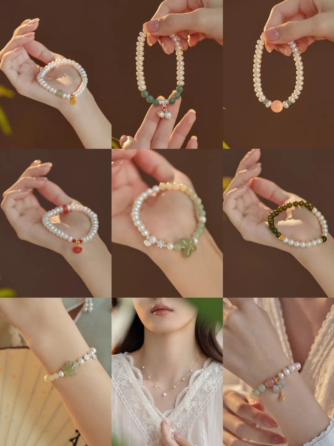 天然来修饰的腕间艺术,精致好看。哪怕一身素淡,只一点玉石珍珠的点缀,也显得温润典雅,气质可人。