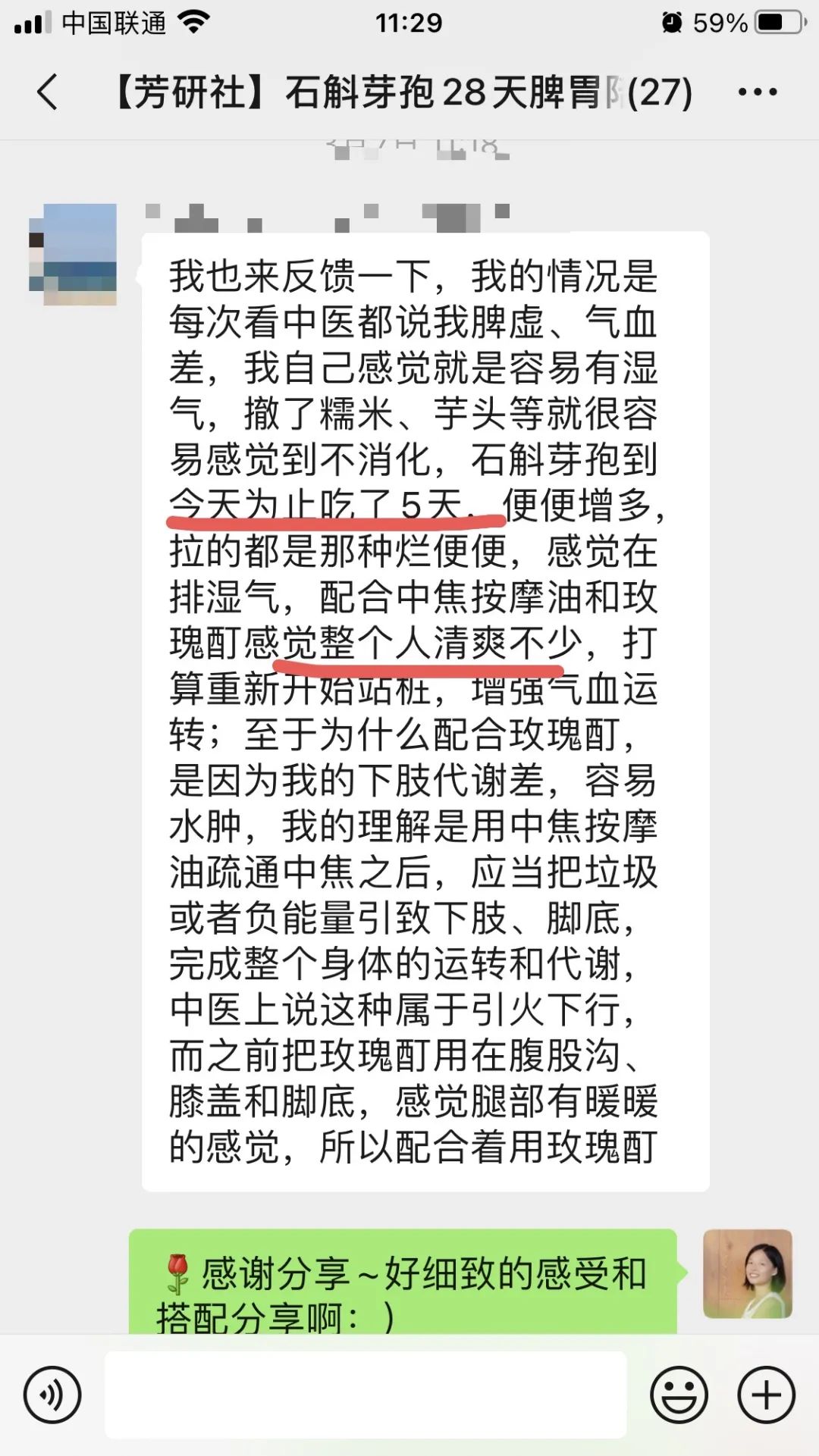 她说在吃石斛芽孢快一个月的时候,她对胃部的觉知力明显增加,能够顺利接收到肠胃“舒服/不舒服/饱了”的信息,对她的减重计划颇有帮助~