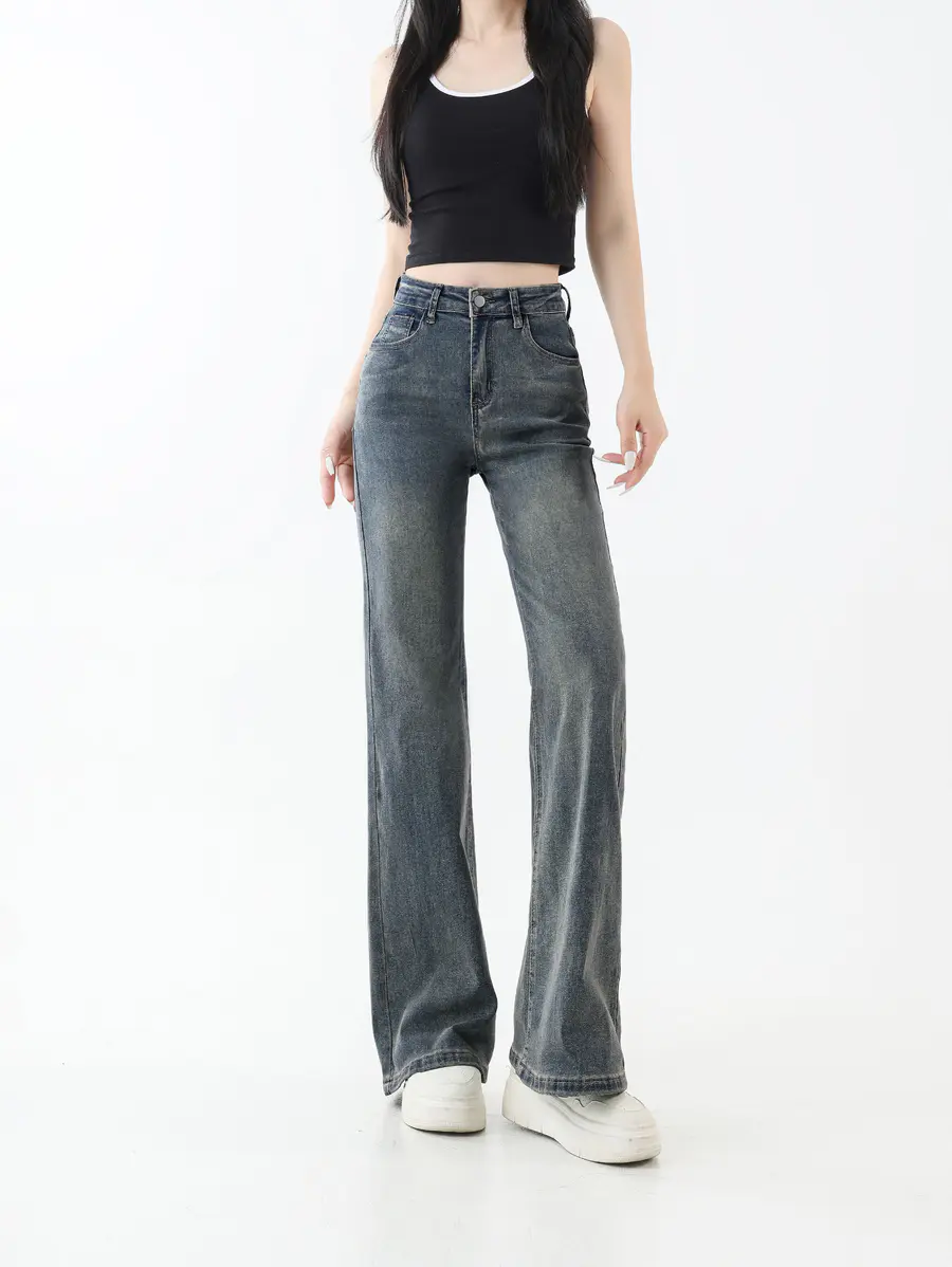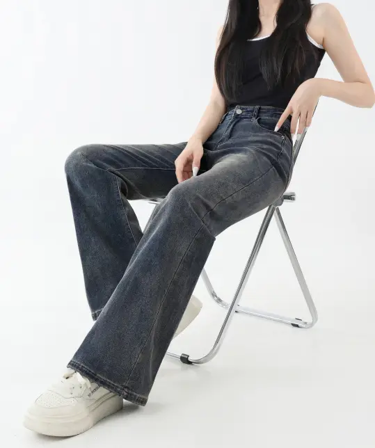 高腰 + 微喇设计简直是「腿精作弊器」;158 秒变 168 既视感!软牛仔面料显瘦又亲肤~
