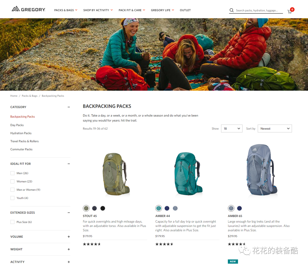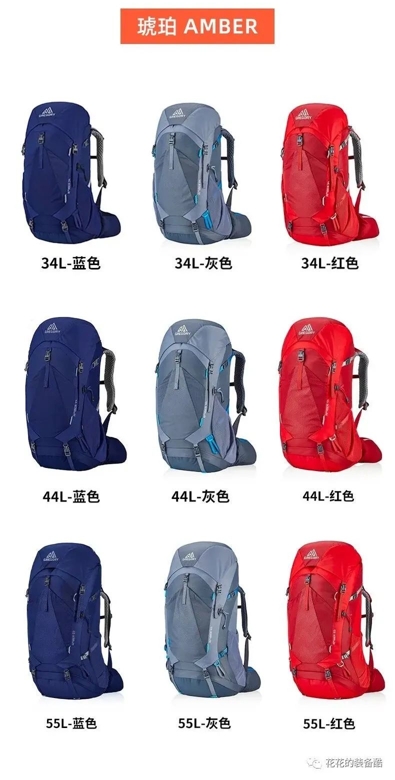 另外,格里高利的设计师还为女性设计了专属的琥珀背包,三种颜色三个容量,超细心。