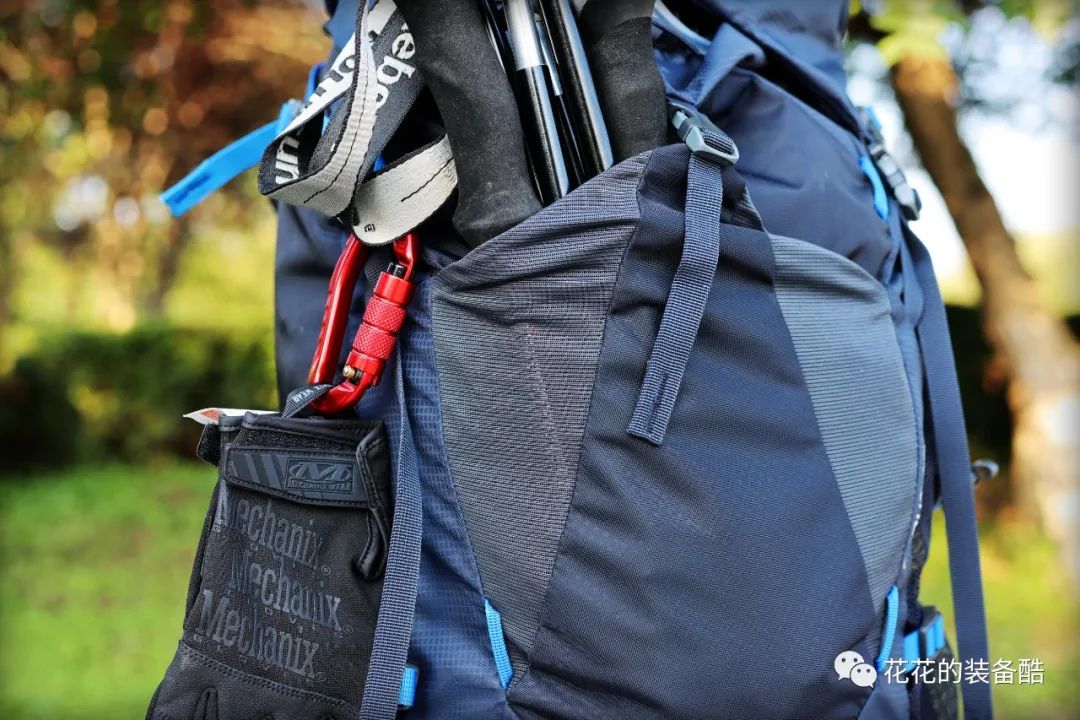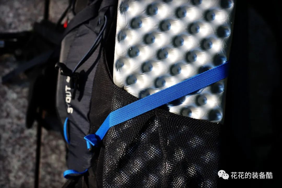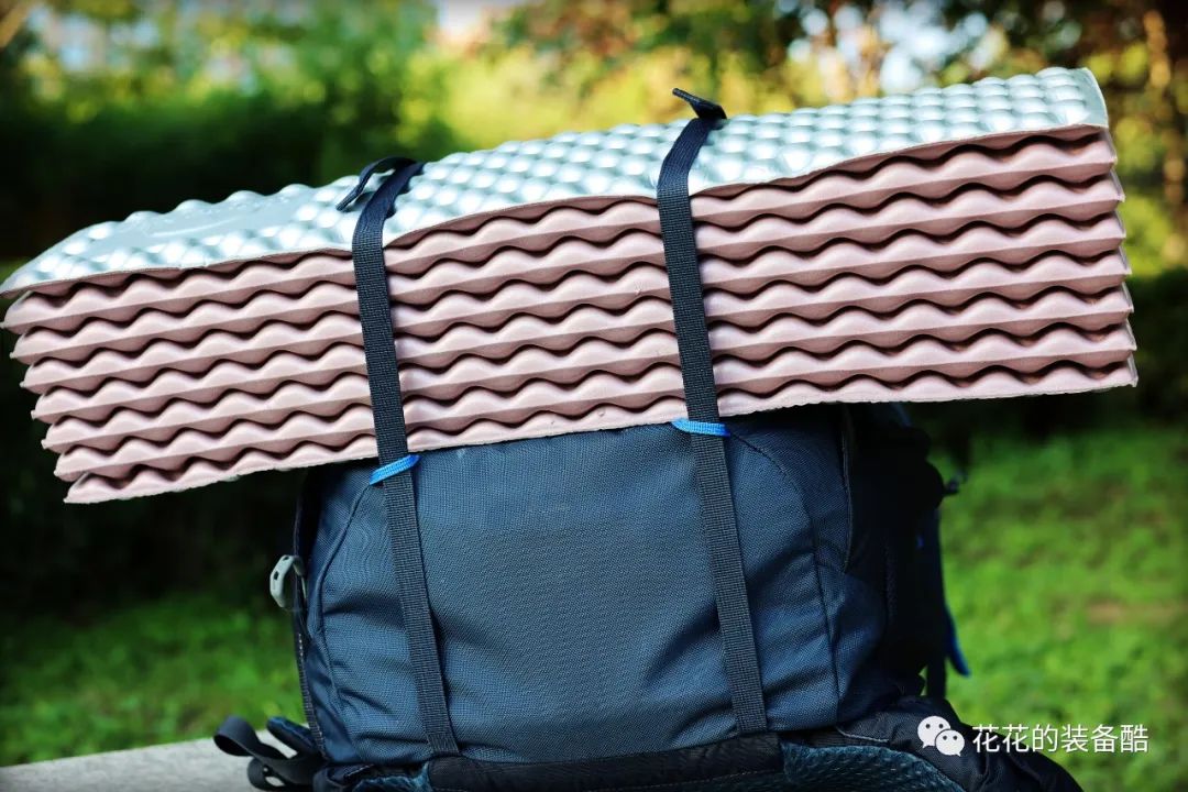 即可缓解包底睡袋仓的拉链承受的压力,又可固定防潮垫等体积大重量轻的长条物品,实现外部挂载。