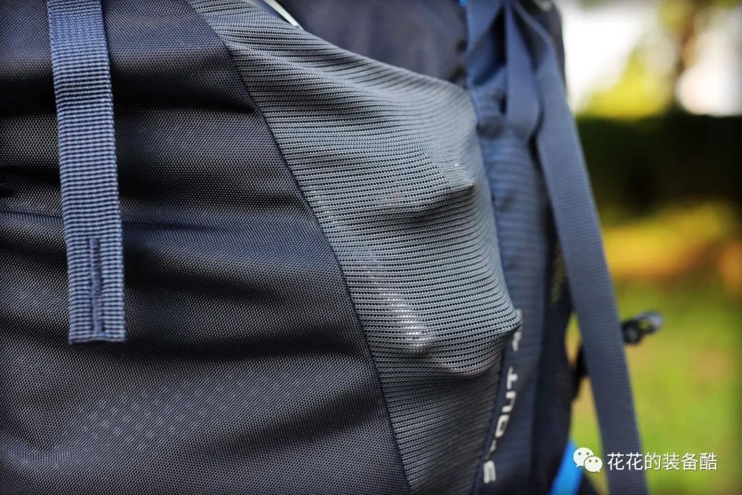 三片式缝制,两侧弹力布提供载物的扩形空间徒步时脱下的外套拖鞋啥的直接塞进去即可;