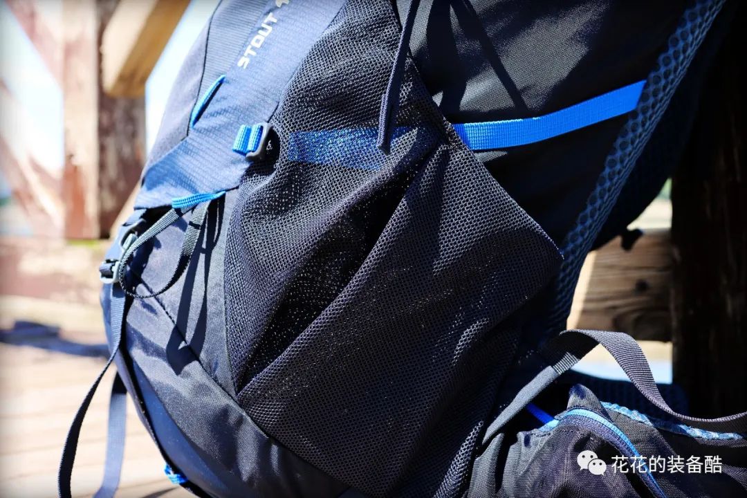 金石侧袋采用硬质网布折角缝制,耐磨耐刮且实用空间较大;
