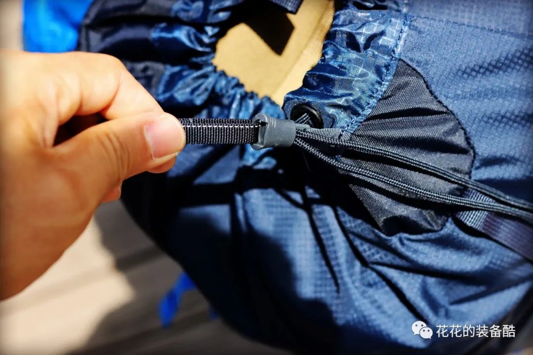 金石45L的主仓采用拉绳收口,可单手收紧或释放。