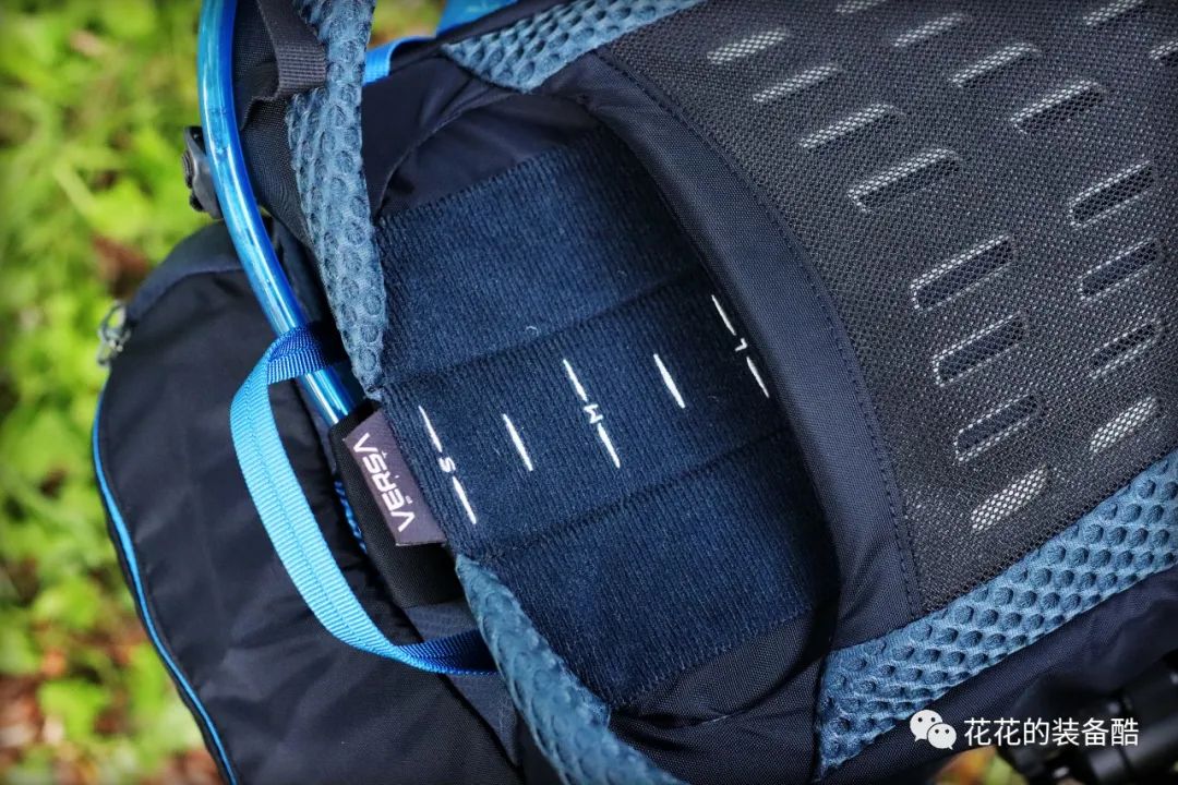 背负板与身体接触面采用魔术贴毛面,上印刻度,笔者身高175,调整到M中段位置非常舒服,金石45L的背负适合背长范围在40.6-53.3cm,匹配身高范围是165-185cm。