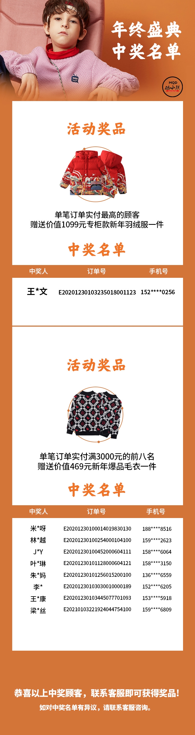 年终盛典中奖名单 出炉啦~
