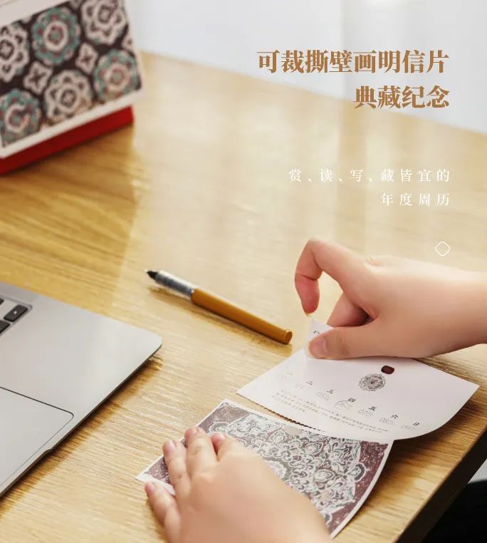 可裁撕纸张设计,收藏纪念,皆是新年里温馨与共的敦煌“吉祥符”,还可以可以作为书签、明信片使用。