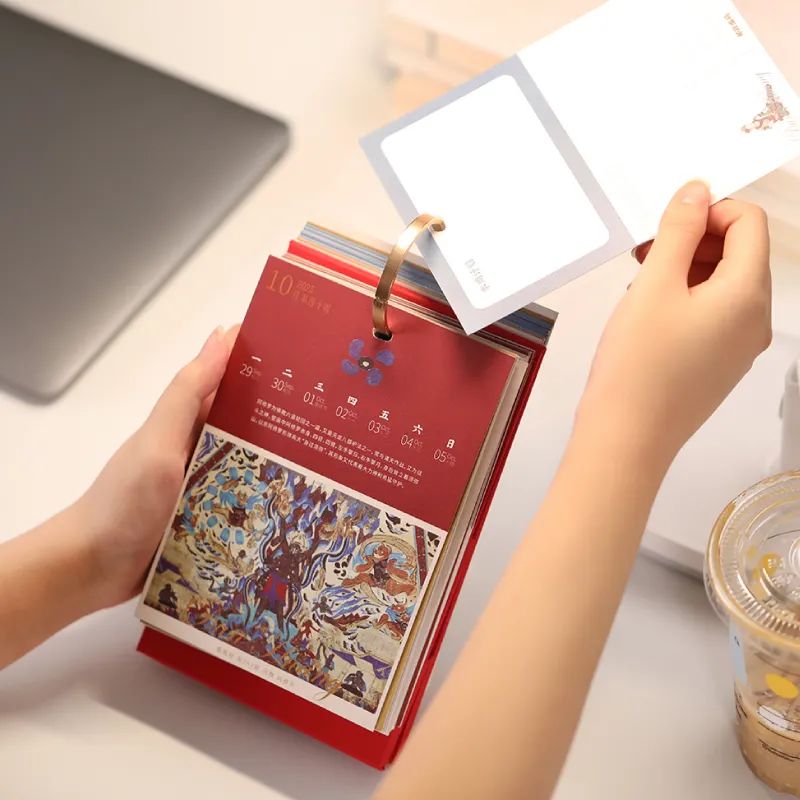 2025《敦煌周历》全新升级,采用特种纸张印刷,可拆卸金属圆环设计,轻松翻阅和拿取纸张,三角形架构牢固不易倾倒,稳稳当当陪你度过一年四季。