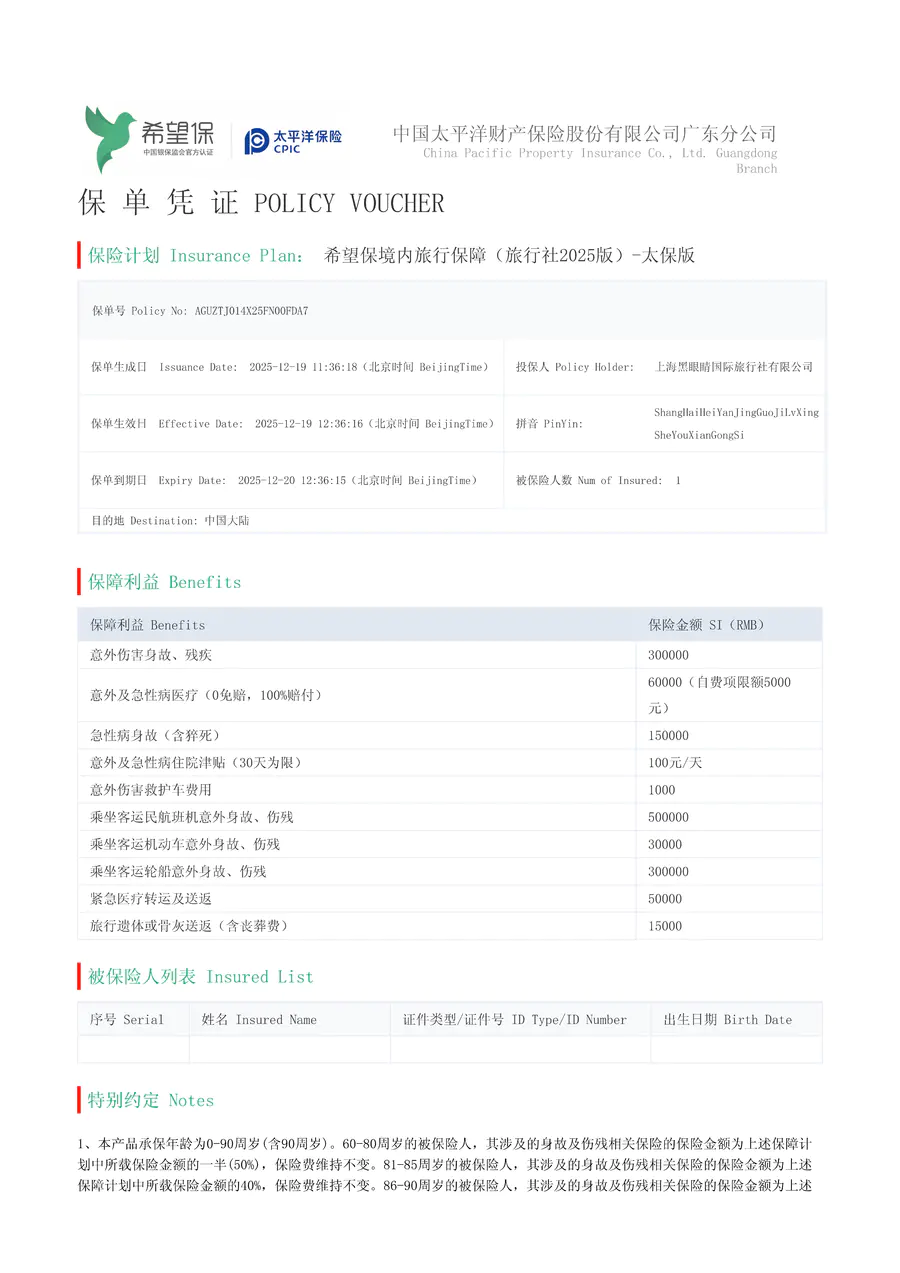 黑眼睛文旅合法资质、旅责险和给客户购买的保险公示