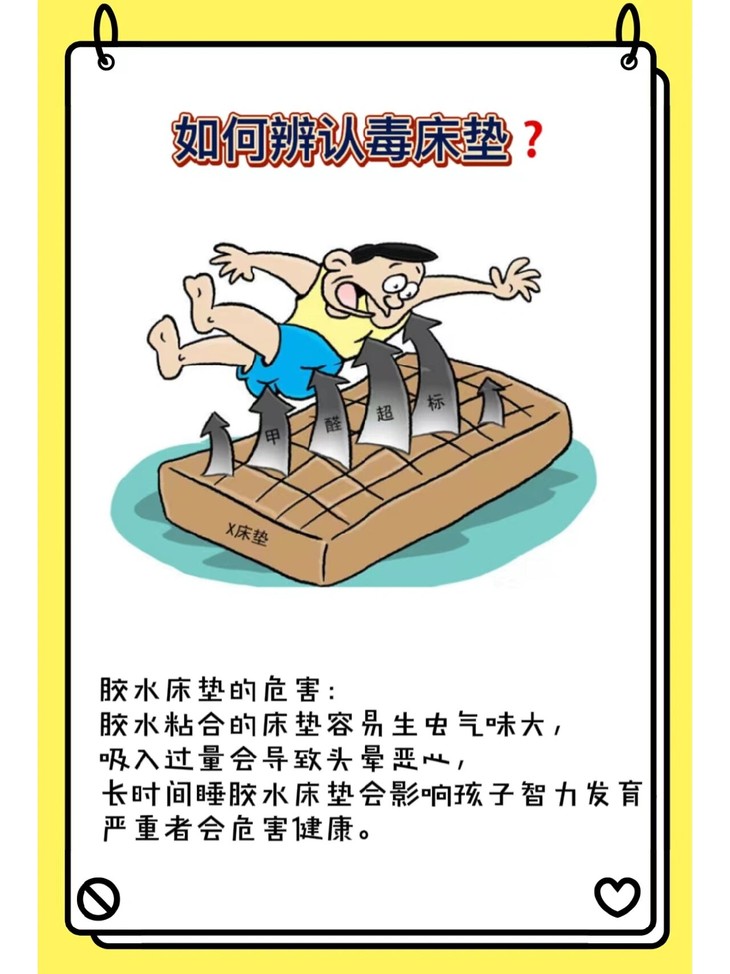 胶水粘合的床垫易生虫气味大,吸入过量会导致头晕恶心,长时间睡胶水床垫会影响孩子智力发育,严重者会危及健康!