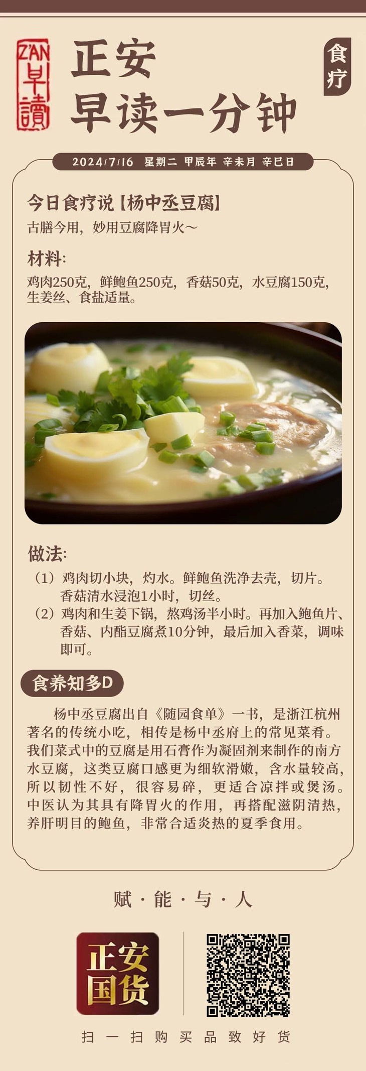7月16日 应季食方【杨中丞豆腐】降胃火