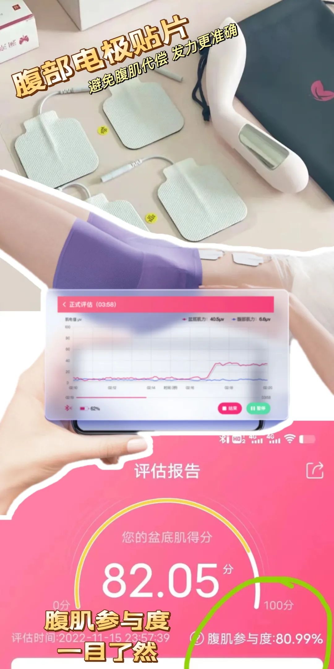任何盆底肌锻炼,都绕不开一个肌肉代偿问题,而腹部肌肉代偿也是所有代偿中最常见的。澜渟二代自带贴片监控腹肌参与率,能校对发力。