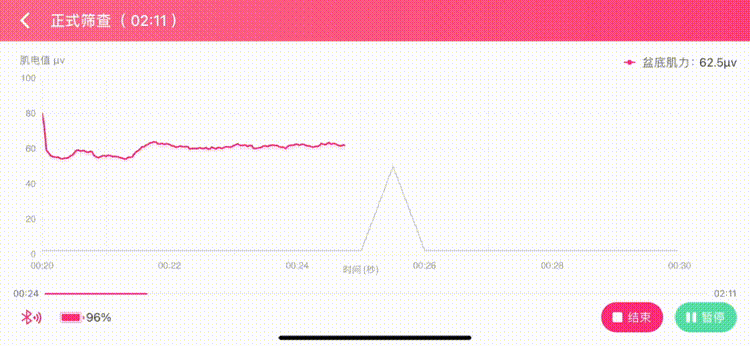 简单来说,就是你在做盆底肌训练的过程中,澜渟可以通过肌肉电信号捕捉你的动作,再把动作以图形形式展现出来。