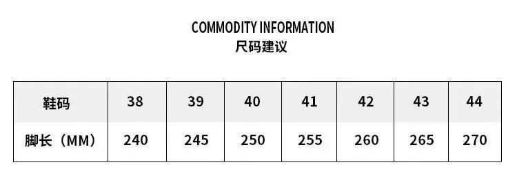 男款尺码从39-44都齐全,尺码参考如下: