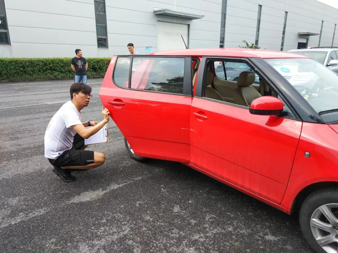 之后是我们的精心炮制的骨灰级教具车。原汁原味还原二手车鉴定的常见“坑”,并且,只有一半车身做漆,另一半只做防锈处理,修复工艺赤裸裸的展示出来。