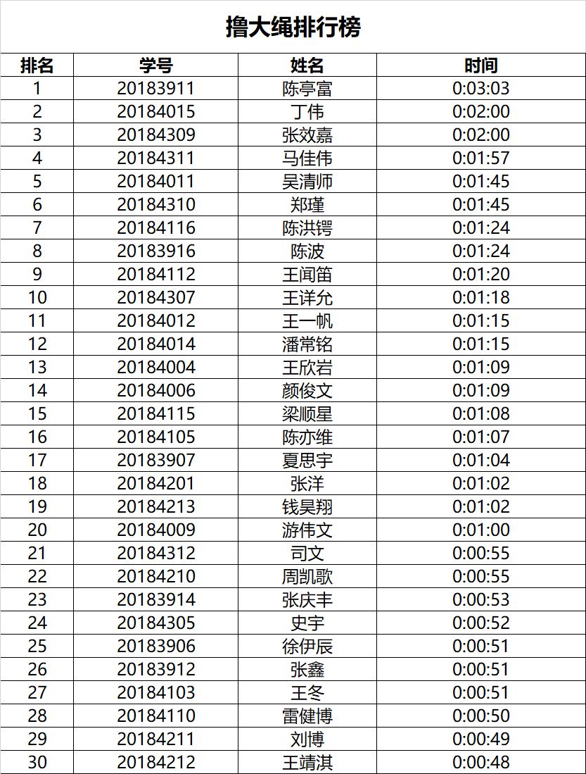 可能是天气太热的原因,本期同学的撸绳持久力普遍不给力,只有两位同学冲击到了总榜的18和19位。