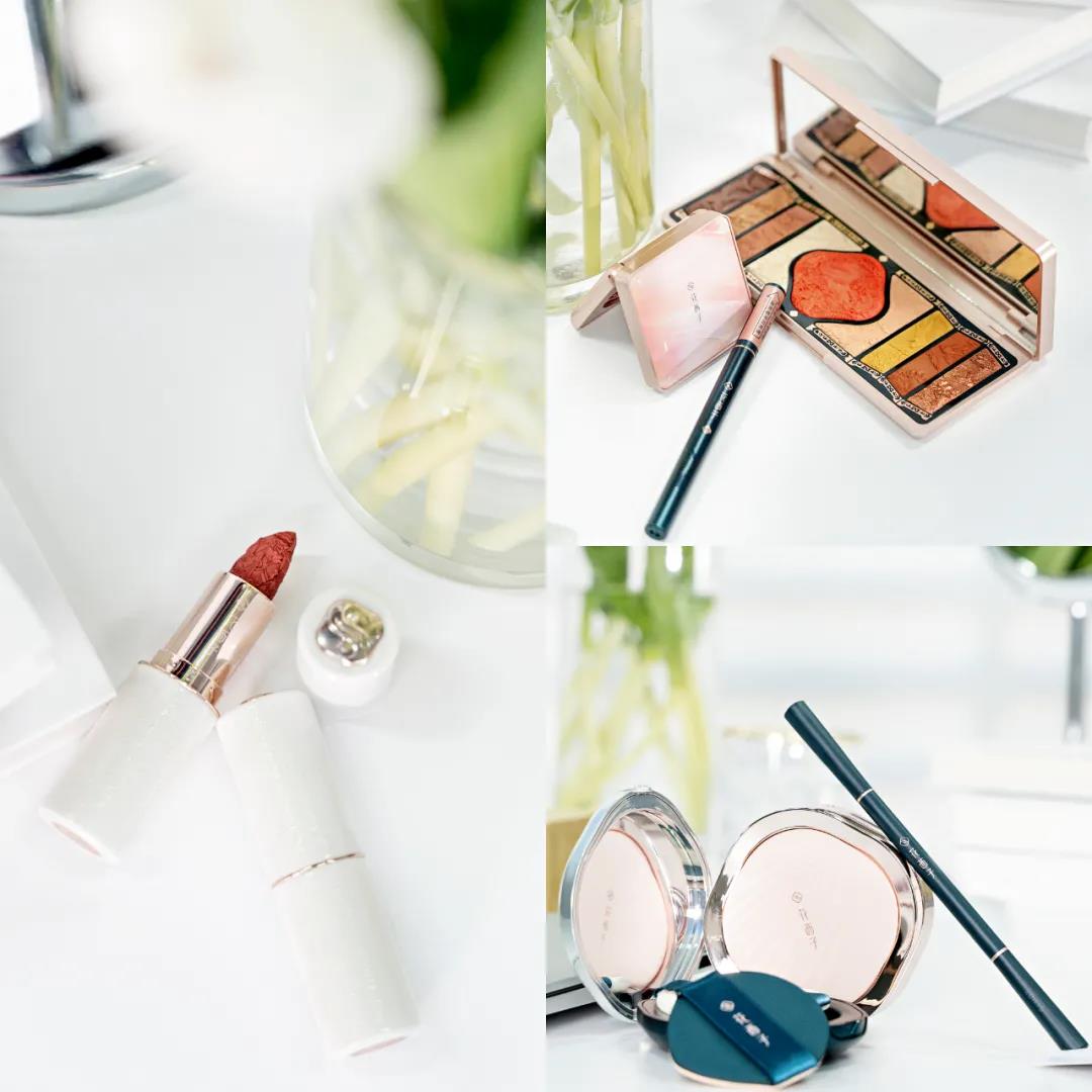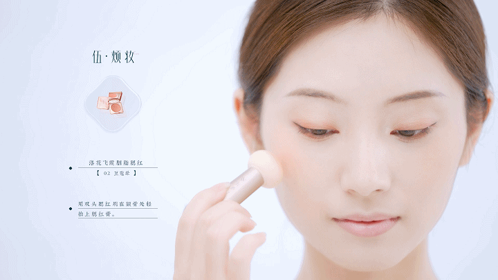分别点于额头、脸颊、下巴、鼻尖后快速轻拍开。