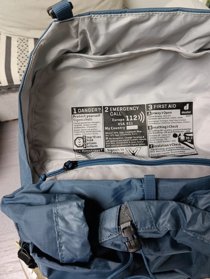 型号标签直接印在显眼位置,36升容量一目了然。顶包里还塞了紧急情况说明书,安全细节到位!