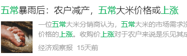 不少媒体分析今年玉米大米减产情况,可能引起涨价,说句真心话,如果涨价能让农民度过灾年,我也愿意付。