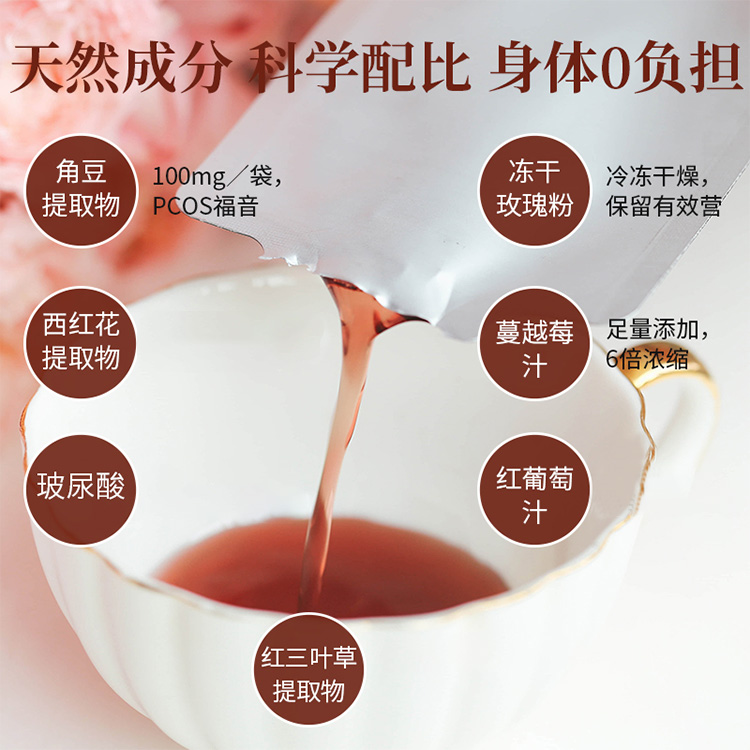7大天然成分科学配比,身体0负担,甄选地中海角豆,丰富足量的DCI来源,角豆添加量100mg/袋。