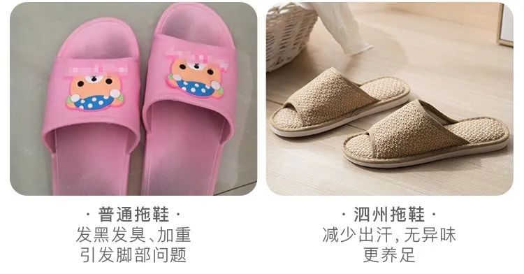 普通拖鞋因为是塑胶的,夏天脚部出汗后,不透气、也不吸汗,鞋子会越穿越臭。