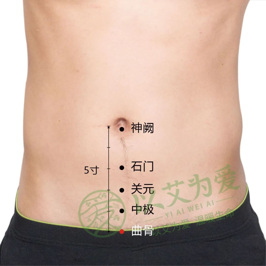 曲骨穴具有温补肾阳、调经止带等功效。主治小腹疼痛,月经不调,带下,尿闭等病证。取穴时仰卧,于腹部中线,耻骨联合上缘凹陷处取穴。