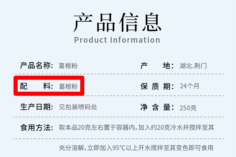 纯人工制作,配料只有葛根粉,不含任何添加剂、防腐剂、香精、色素!