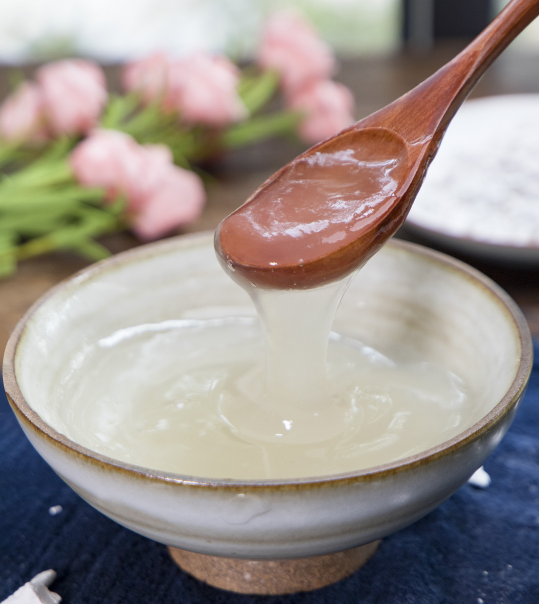 泡完的葛粉和藕粉类似,只有一股淡淡的植物清香,是透明、可拉丝的糊状,口感顺滑清爽。