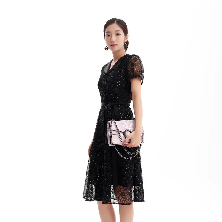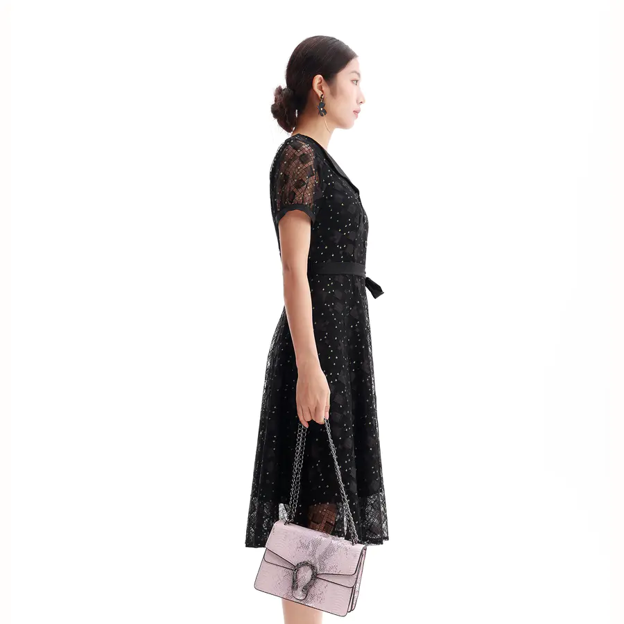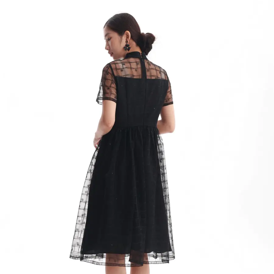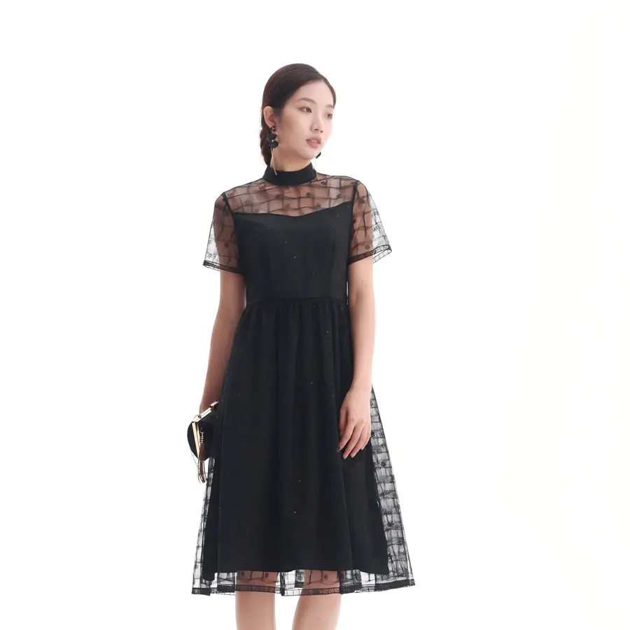 半高领轻拢夜色亮片如星坠裙裾