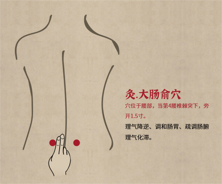配穴建议:关元、中脘、天枢、脾腧、胃腧、大肠腧。