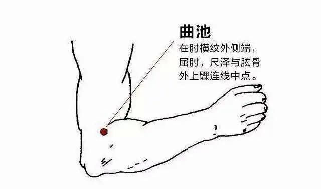 23.曲池穴:位于屈肘成直角时,肘横纹外侧端与肱骨外上髁连线中点。曲池穴是手阳明大肠经的合穴,三伏灸此穴可清热祛湿、调理肠胃,对于湿热内盛、腹胀等症状有良好的疗效。