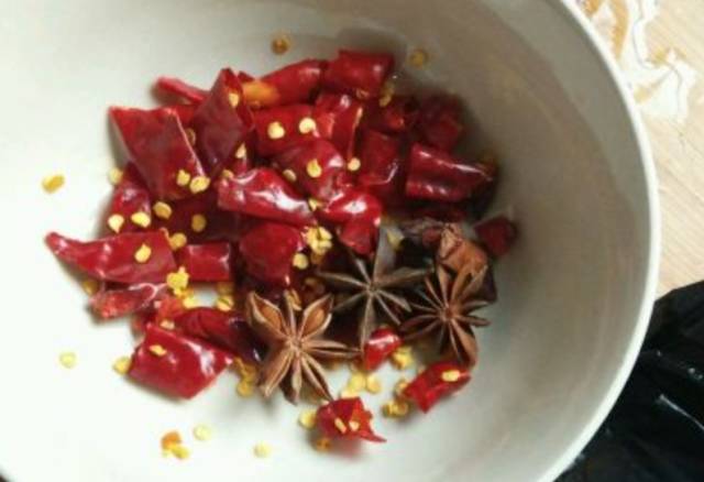 大蒜、大料、干辣椒、盐;