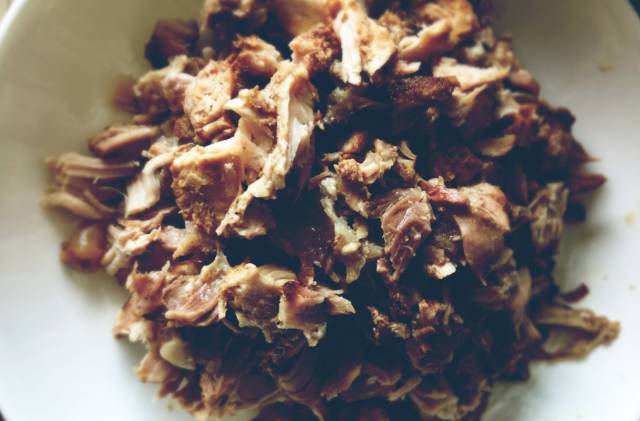 3、放入拆骨肉,大火“咕嘟”5分钟,翻炒至汤汁收干,即可!
