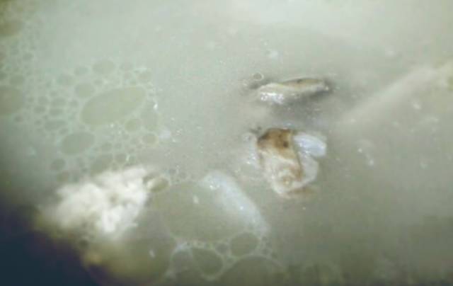 1、大棒骨敲折,清洗干净,放入锅中大火烧开,大火炖煮5分钟,撇清浮沫;