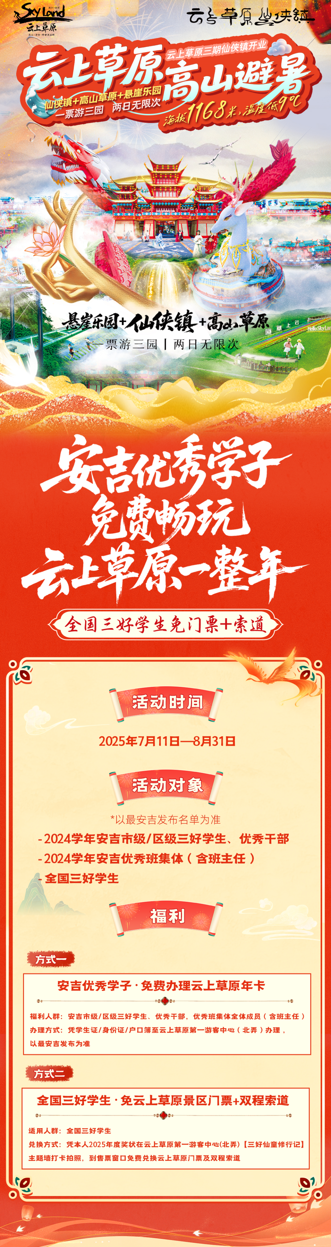 双重福利 | 安吉优秀学子全年免费畅玩云上草原、全国三好学生免门票+索道