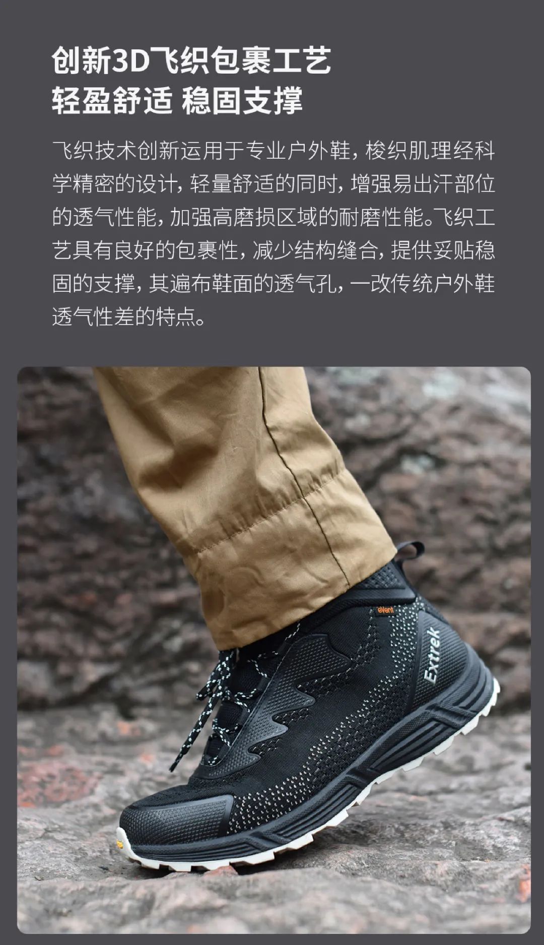 天越这款中帮防水户外徒步鞋,使用的是 Vibram 全新升级的 xstrek evo 配方,以较轻量低硬度达到极优的缓震效果,告别沉重硬质鞋底累脚、伤脚烦恼。