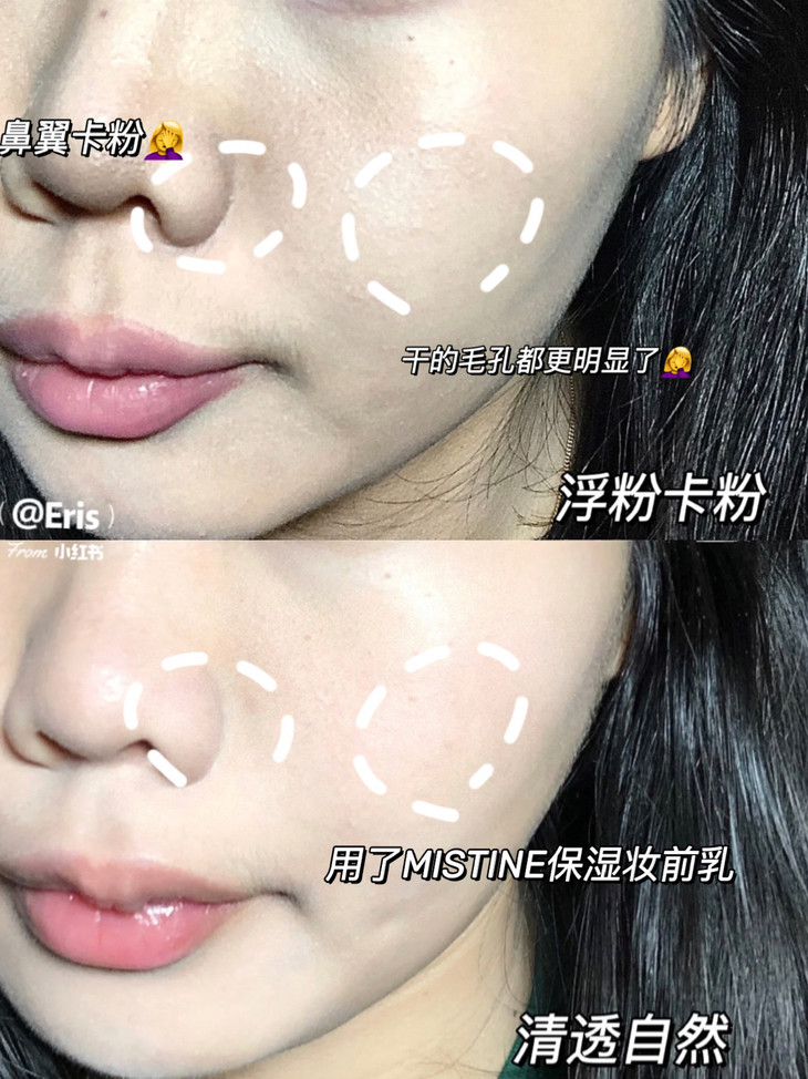 像鼻翼嘴角这样容易卡粉的地方可以多涂一点,然后揉搓吸收,再薄涂全脸,能大大降低卡粉概率哦