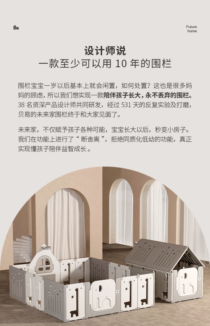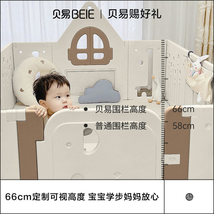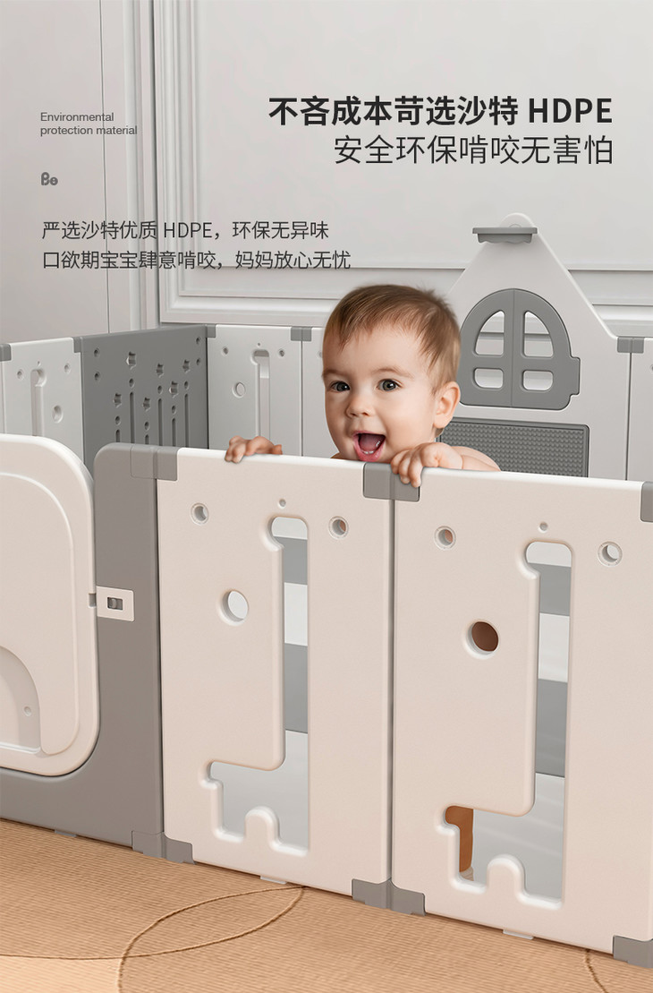 接下来给大家分享一款贝易宇航员围栏,严苛甄选HDPE原生料,比一般PE材质密度更高,安全环保,无异味,不含BPA,宝宝啃咬也不怕,采用66cm的科学高度设计,兼顾宝宝的安全与安全感,合理高度,辅助宝宝学步,拽拉无忧。