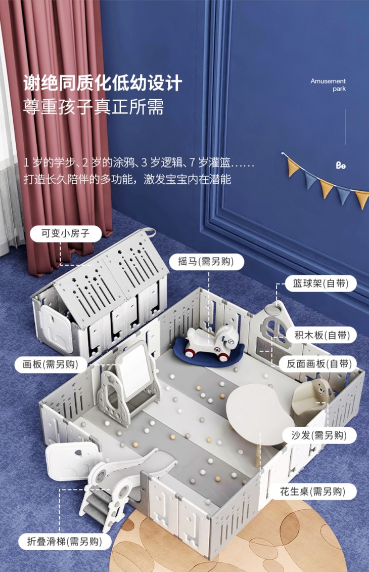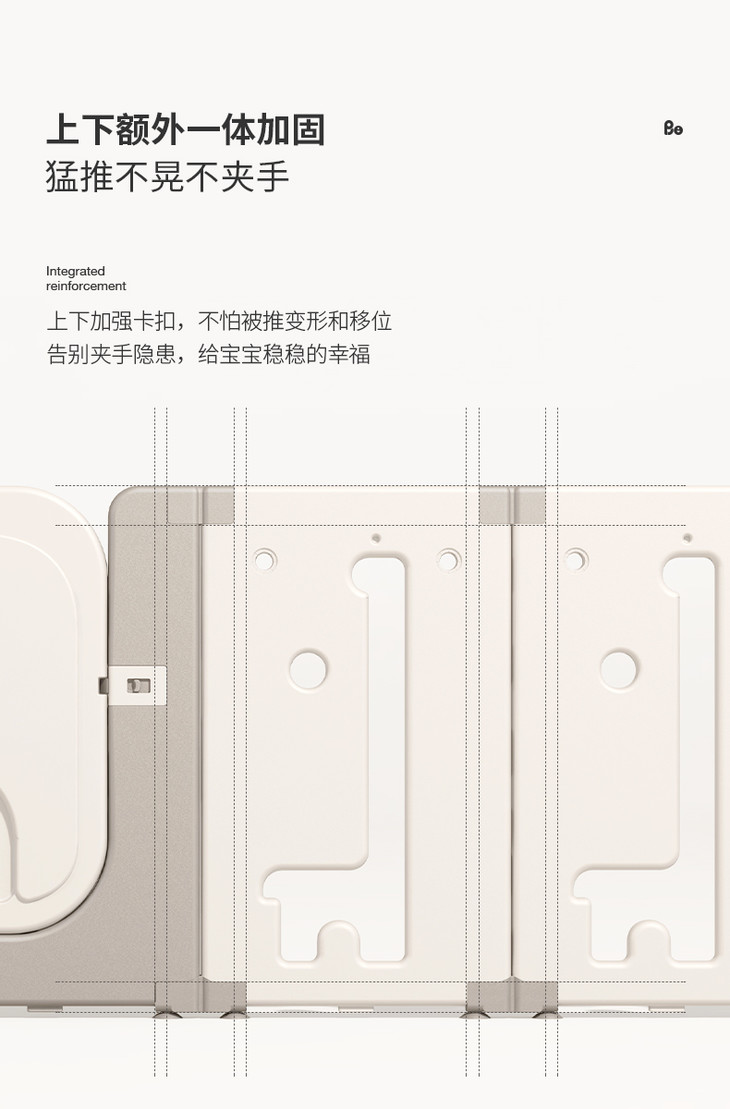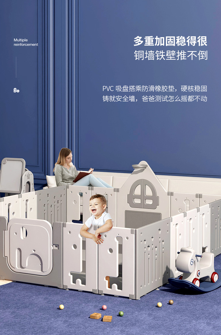 采用大神级齿轮咬合结构卡扣,片与片紧密相连,安全稳固,从点到面构建“魔法安全屋”,给宝宝一个安心的“魔法保护罩”,解放双手,给妈妈多一些普拉提和下午茶时间采用中空一体吹塑,宝宝磕碰不痛,经过亲肤肌理打磨,光滑圆润无毛刺,不伤宝宝娇嫩的肌肤,外置儿童安全锁设计,防止宝宝跟学误开。