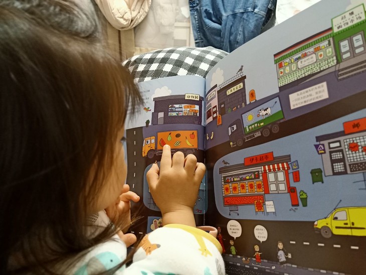 《寻找奇奇怪怪的车》推荐的阅读年龄是4岁,小糯糯现在刚过2岁,我如果按照文字老老实实读的话,她未必有兴趣听,于是我们今天把它当成一个图画书来看啦。