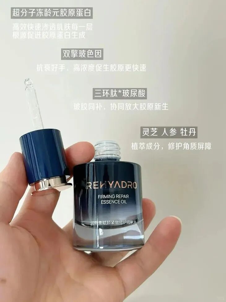 这款超分子胶原油采用油相修护,水相抗垮的逻辑,在修护过程中层层抗垮,持续性抗垮脸。